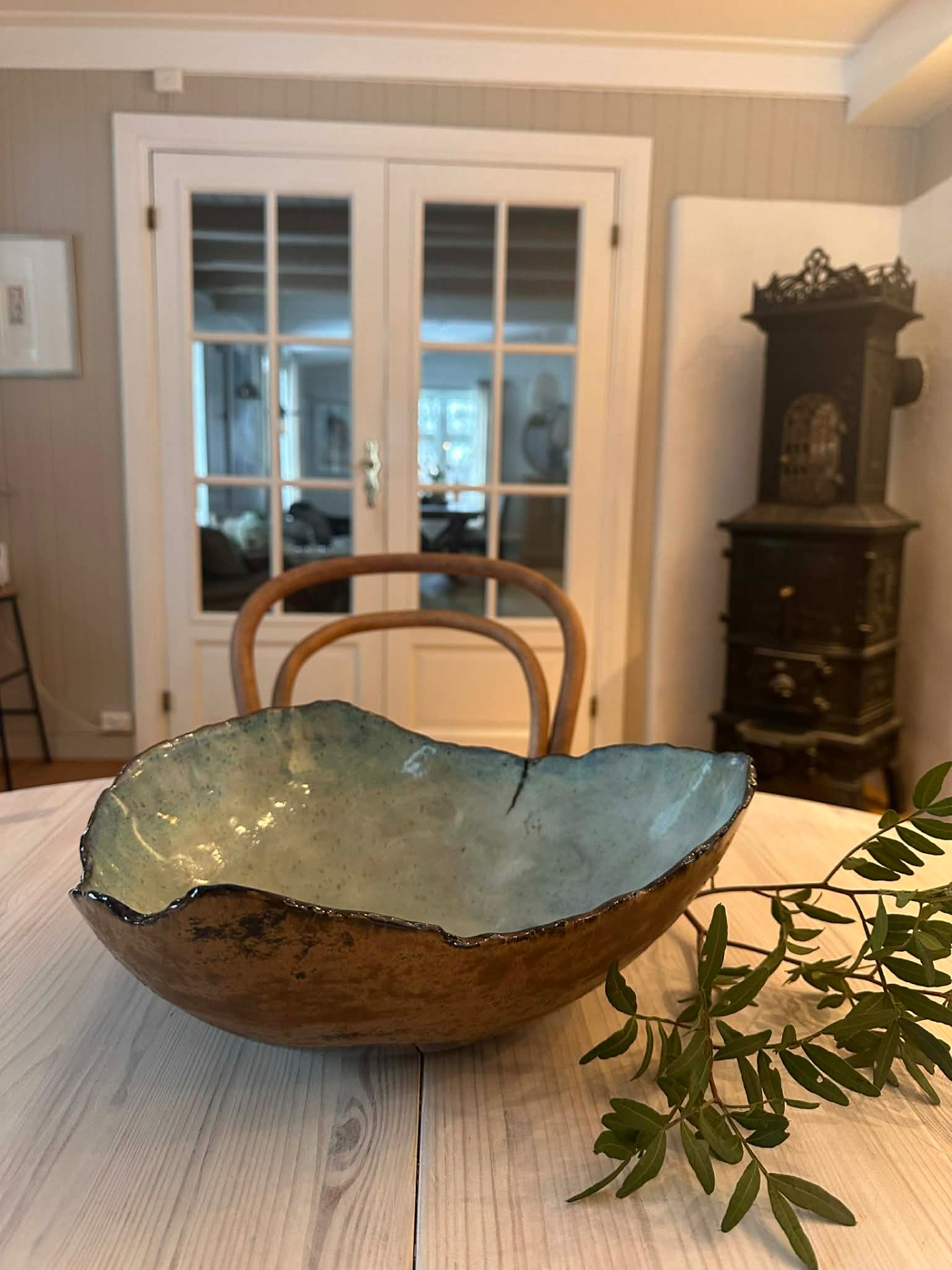 En potetgullskål med bladdekor er også en fin gaveidé til den som setter pris på norsk design, keramikk og naturinspirerte detaljer. Keramikken tåler daglig bruk og passer like godt på sofabordet som på et dekket festbord.